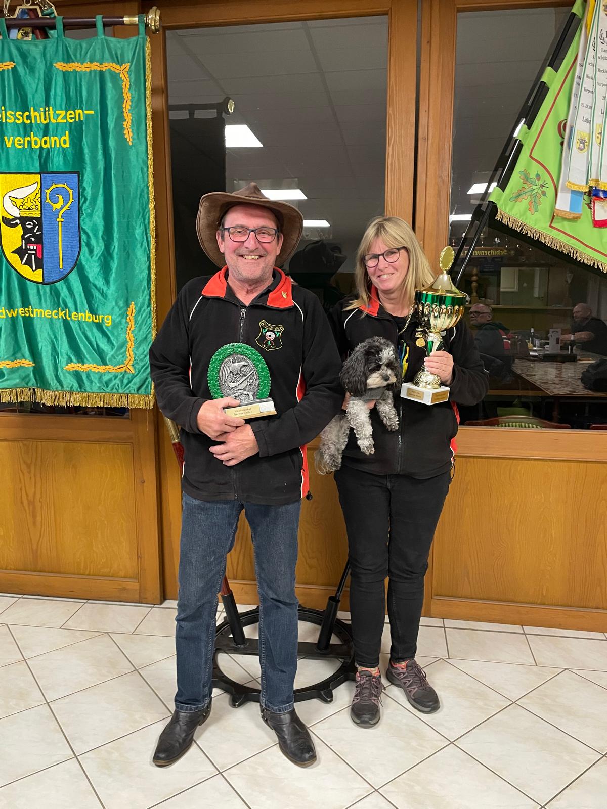 neuen KK-Anlage. Wie der Name schon sagt, wurde mit beginnender Dunkelheit der Wettkampf durchgeführt, unter Leitung unseres kommissarischen Sportleiter Volker Braun mit Hilfe der Schießsportleiter. Erschienen sind insgesamt 12 Schützen und Schützinnen unseres Vereins. Schade, war es doch der 1. Wettkampf auf der neuen Anlage und dies mit so geringer Beteiligung. Die Ergebnisse der Erstplatzierten bei den Männern und Frauen lagen sehr eng beieinander. Letztendlich konnten sich Birgit und Frank durchsetzen und die begehrten Wanderpokale in Empfang nehmen. Trotz geringer Teilnahme ein schöner kleiner Wettkampf und Spaß für uns alle.